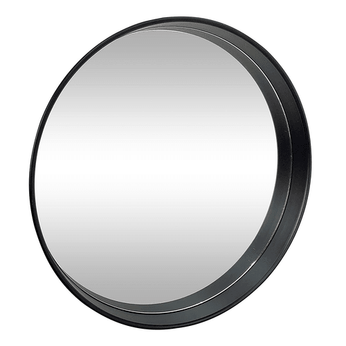 Black circular wall-mounted mirror