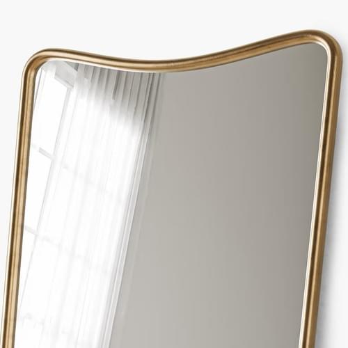 Full-length mirror with curved edges and gold frame